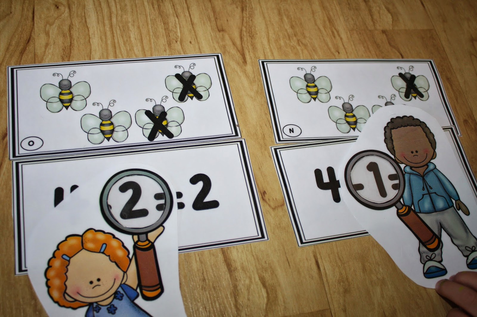 Students can use bee manipulatives to act out the number sentence.  This is very helpful for students that need to experience math through hands-on activities.